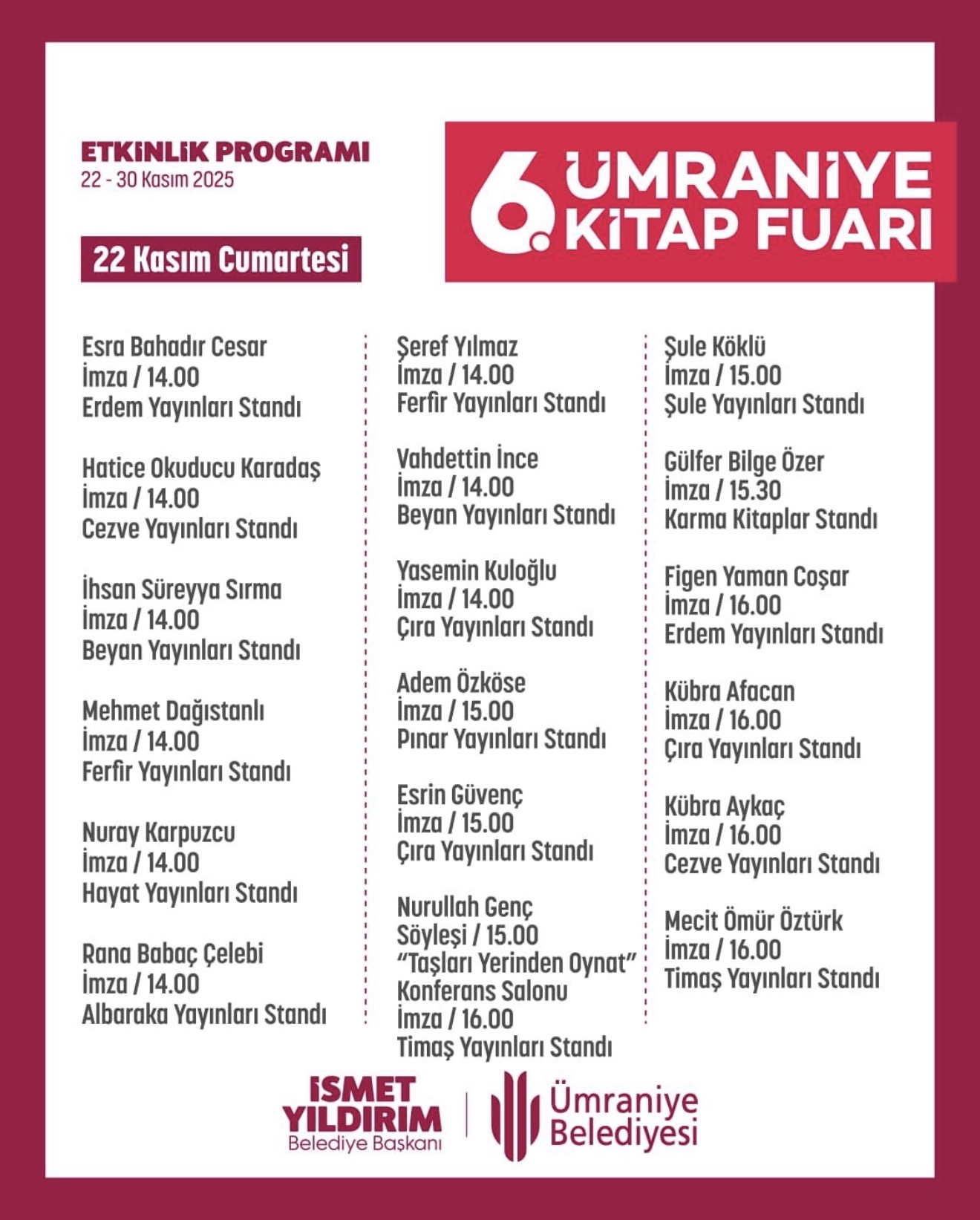 Kimler Katılıyor? Yıldız Yazarlar Ümraniye’de! (Which Authors Are Attending?)