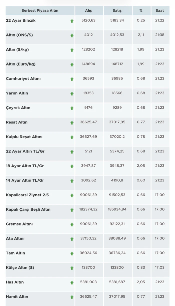 | Altın Türü (Gold Type) | Alış (Buy) | Satış (Sell) |