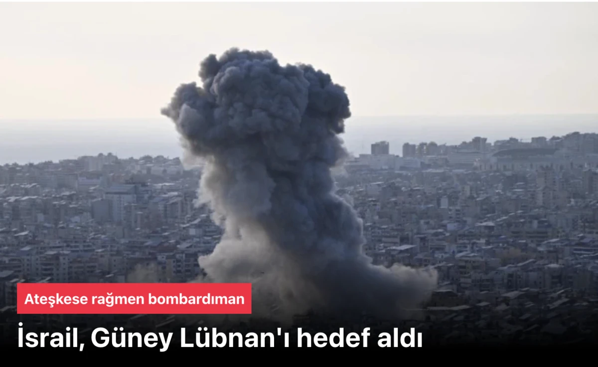 Ateşkese rağmen bombalama devam etti: İsrail, Güney Lübnan'ı hedef aldı