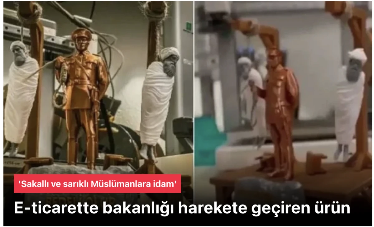 Ticaret Bakanlığı, bir e-ticaret platformunda sakallı ve sarıklı Müslümanların idam edildiğini gösteren ürünleri satışa sunarak toplumun inanç ve değerlerini hedef alan kişi hakkında inceleme başlattı. Ürünler kaldırılırken şahıs hakkında idari süreç başlatıldı.