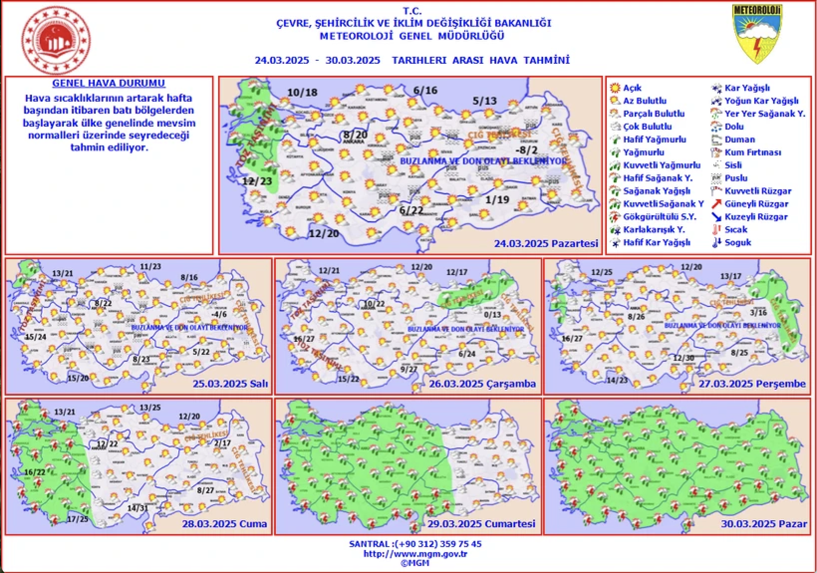 Meteoroloji'nin resmi internet sitesinde yer alan mart ayının son haftasına ilişkin hava haritasında şu bilgilere yer verildi: