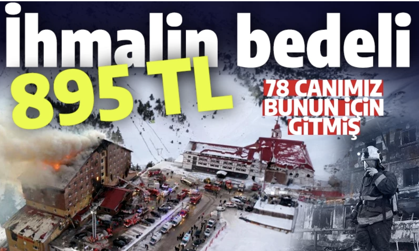 Bolu Kartalkaya’da gecelik fiyatı asgari ücretten fazla olan ölüm otelinde güvenlik zafiyeti ve denetimsizlik sonucu çıkan yangında 78 canımız hayatını kaybetti.