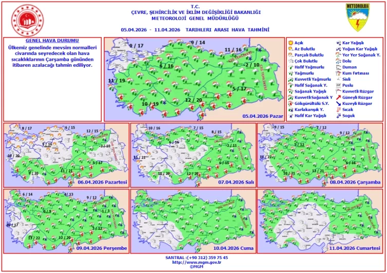 Meteoroloji Genel Müdürlüğü (MGM), tarafından paylaşılan uzun vade hava tahmin raporundan edinilen bilgilere göre, Türkiye genelinde hafta başında mevsim normallerinde seyreden hava sıcaklıkları, çarşamba gününden itibaren azalacak.