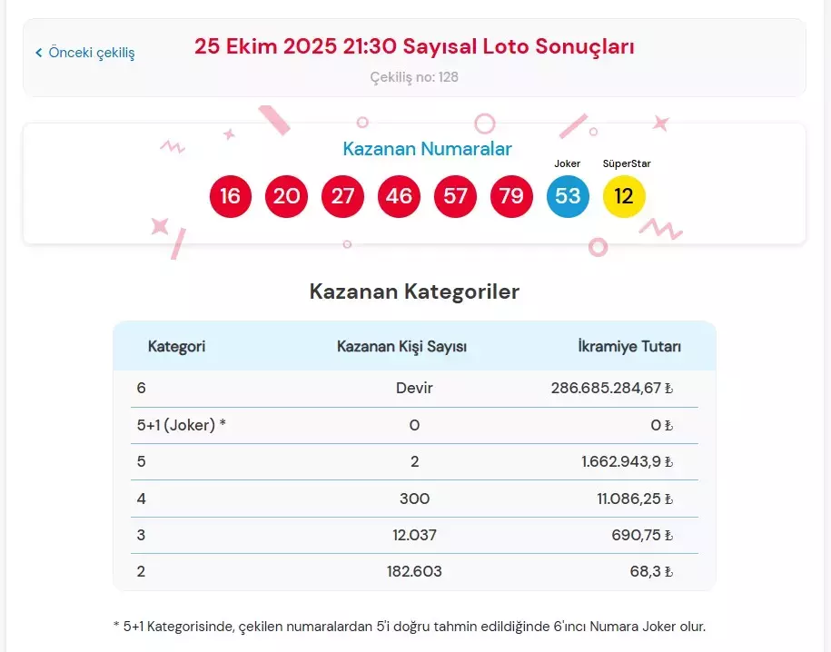 Çılgın Sayısal Loto Çekiliş Sonuçları 25 Ekim 2025: Kazandıran Numaralar ve Sorgulama Ekranı (Crazy Numerical Lottery Results October 25, 2025)