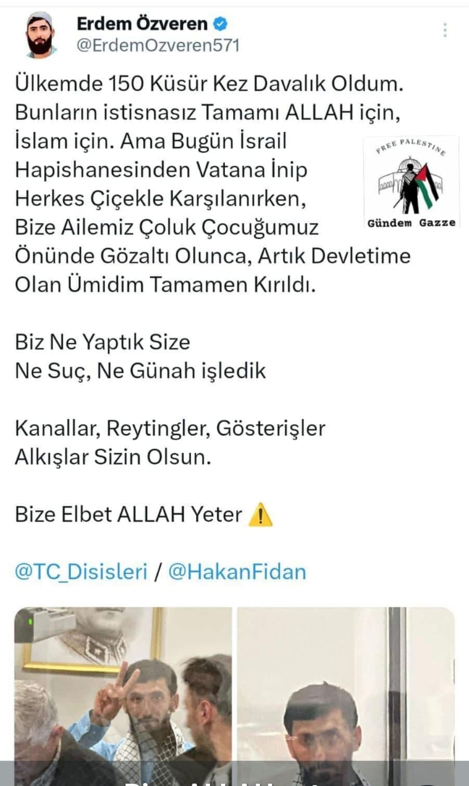 ÖZVEREN'NİN HÜKÜMET VE KURUMLAR KARŞITI İŞTE O ALINTILI PAYLAŞIMI;