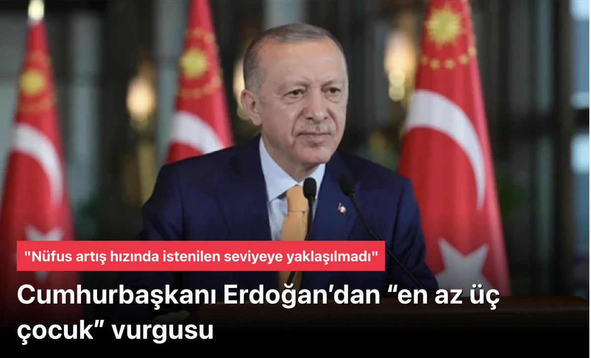 Cumhurbaşkanı Recep Tayyip Erdoğan, nüfus artış hızında hala bir netice alınamadığını belirterek, "Gelişmeler iyi değil, en az 3 çocuk güçlü bir ailenin olmazsa olmazı, neslimiz çoğalmalı" dedi.