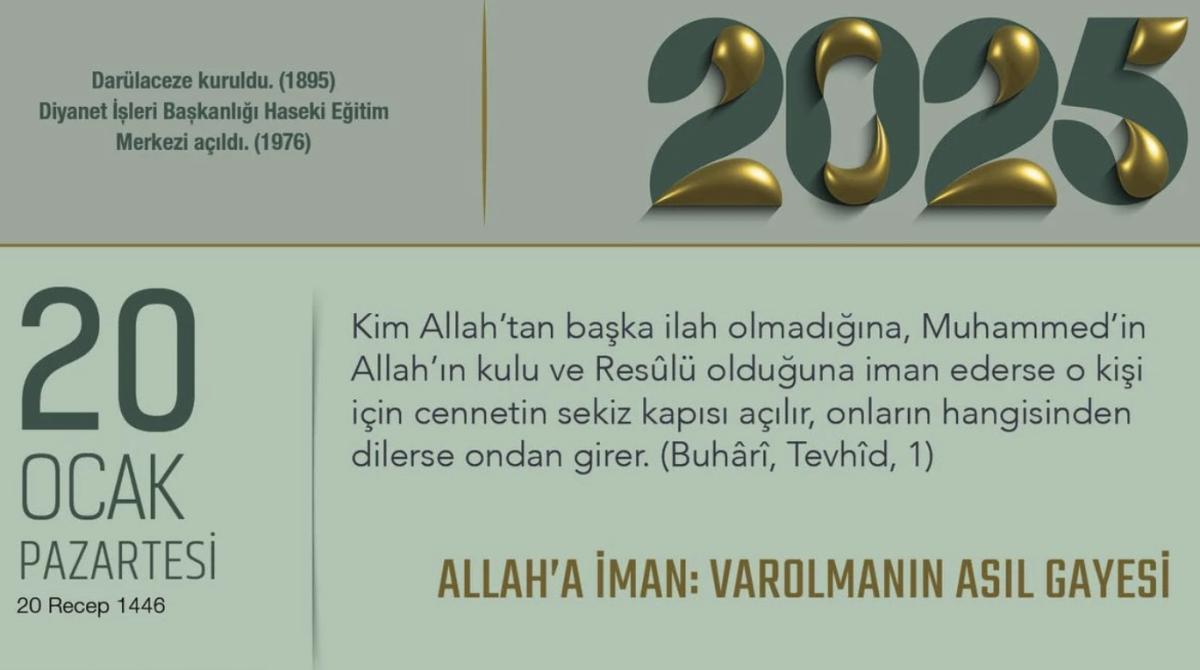 Bir Hadis: "Kim Allah’tan başka ilah olmadığına, Muhammed’in Allah’ın kulu ve Resûlü olduğuna iman ederse o kişi için cennetin sekiz kapısı açılır, onların hangisinden dilerse ondan girer." (Buhârî, Tevhîd, 1)