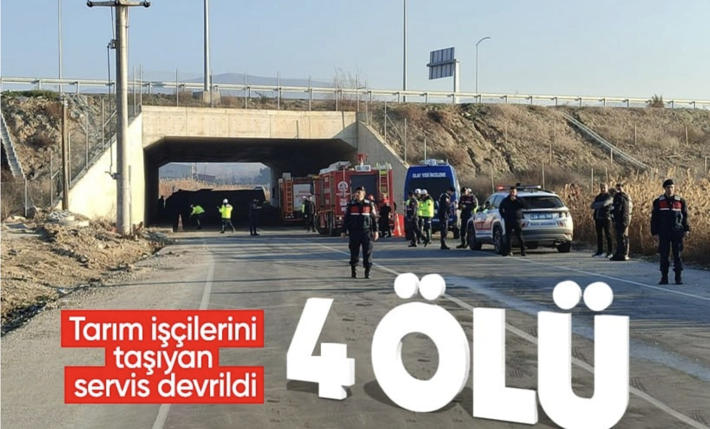 Denizli'nin Pamukkale ilçesinde işçileri taşıyan servis midibüsü devrildi, ilk belirlemelere göre 4 kişi hayatını kaybetti.