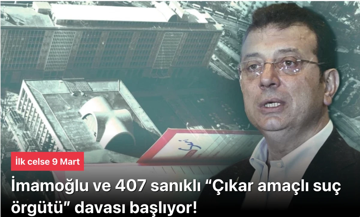 İstanbul 40. Ağır Ceza Mahkemesi’nde 9 Mart’ta başlayacak davada, 105’i tutuklu 407 sanığın yargılanmasına önümüzdeki nisan sonuna kadar haftanın 4 günü devam edilecek. İddianamede, Ekrem İmamoğlu ve örgüt yöneticilerine 849 yıldan 2 bin 430 yıla kadar hapis cezası istendi.