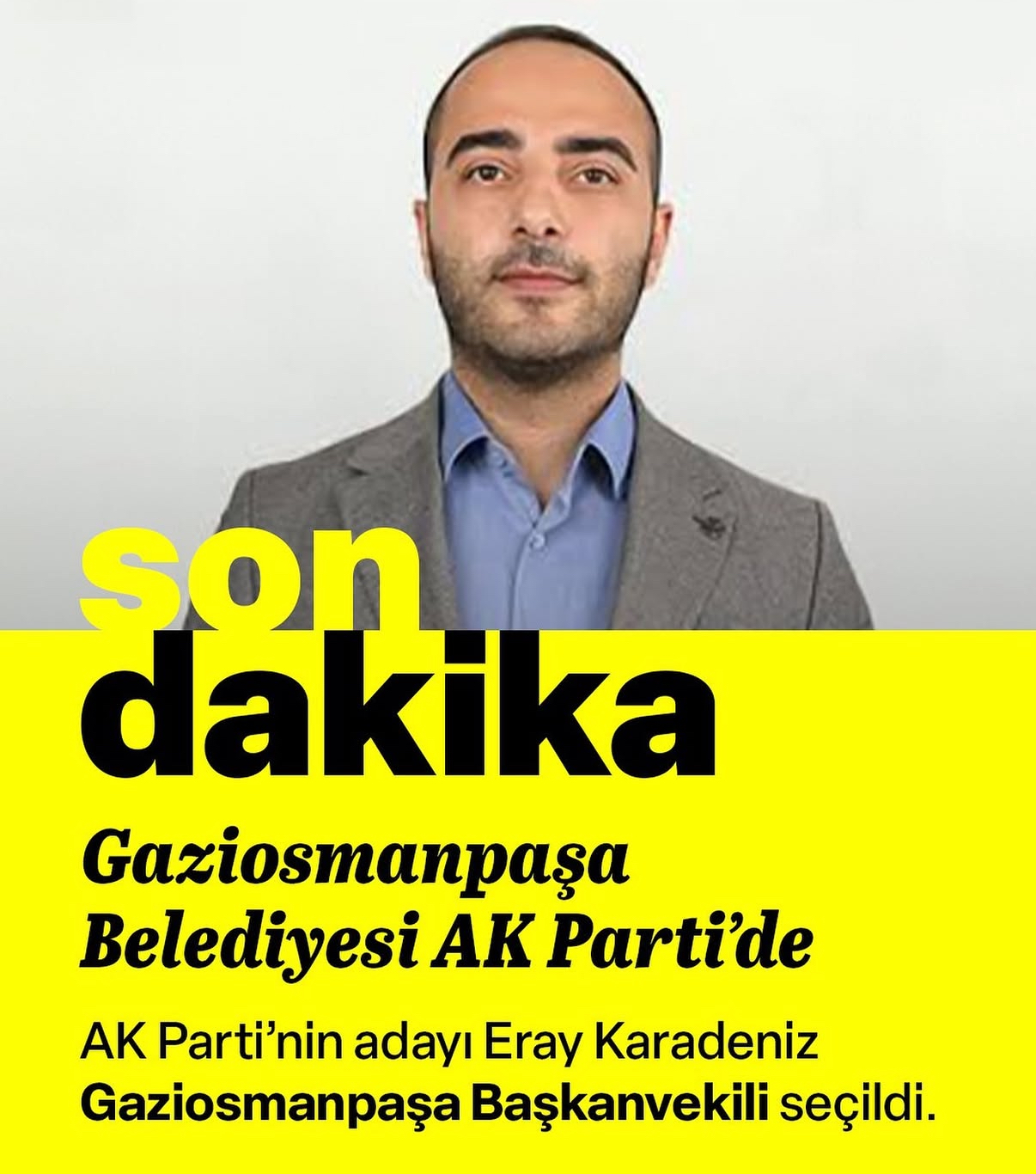 Gaziosmanpaşa Belediyesi AK Parti'ye geçti: Eray Karadeniz Başkanvekili seçildi. Eray Karadeniz Kimdir? Eray Karadeniz Hakkında;