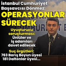 www.NetHaberler.Com editörünün derlediği bu habere göre; İstanbul Cumhuriyet Başsavcısı Fatih Dönmez, bugün düzenlediği basın toplantısında uyuşturucu, suç örgütleri, bahis ve belediye soruşturmaları hakkında önemli açıklamalar yaptı. Gelişmeler ve yeni operasyonlar yakından takip ediliyor.