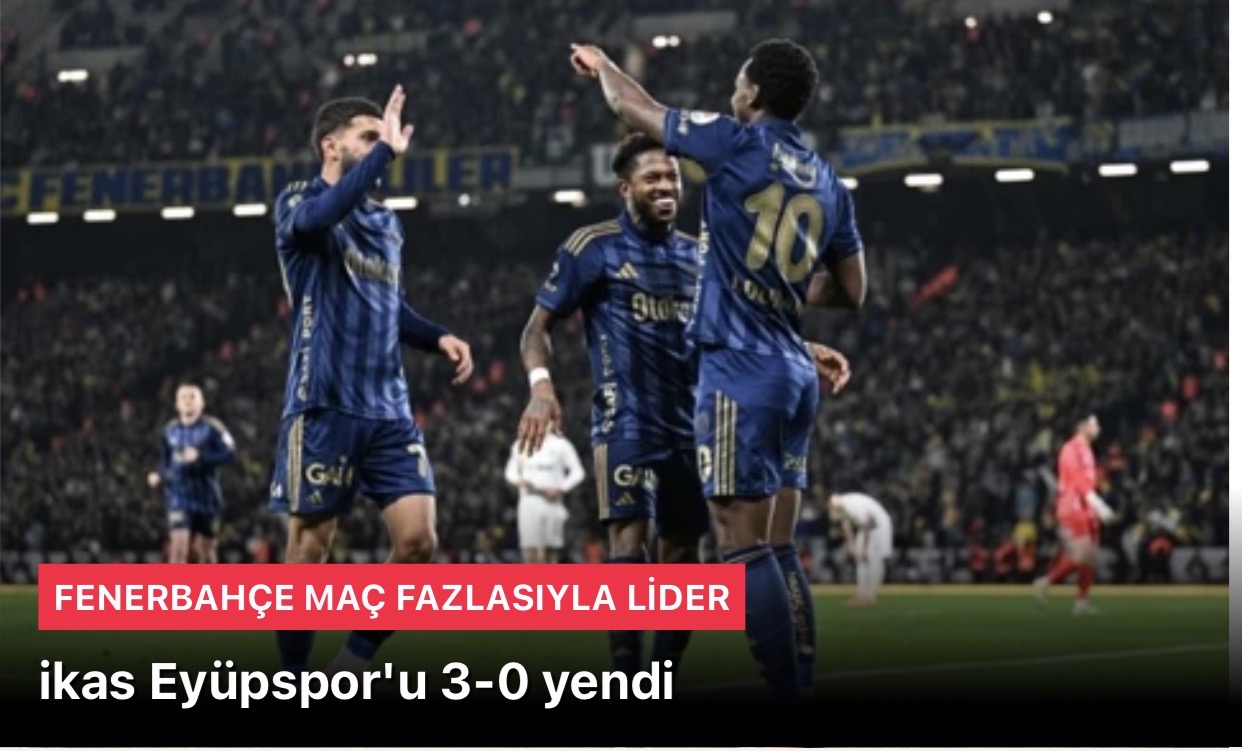 Fenerbahçe 3 Eyüpspor 0 Maç bitti! Canlı Anlatım: Eyüpspor Fenerbahçe (Süper Lig maçı) Süper Lig'in 17. haftasında Eyüpspor ile Fenerbahçe kozlarını paylaştı.