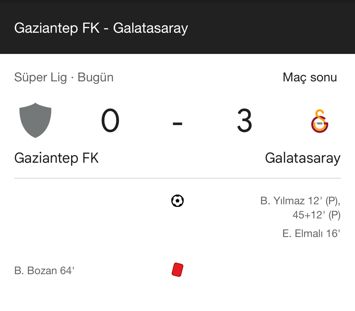 Gaziantep: 0 - Galatasaray: 3