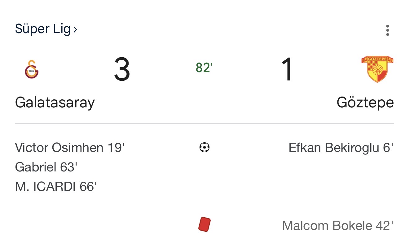 66. dakikada Göztepe’den Olaitan, kale önünden topu dışarı attı – büyük kaçan fırsat! Hemen ardından 72. dakikada Icardi sahneye çıktı ve 3-1 yaptı! Bu gol, maçı kilitledi. Wikipedia özetine göre, son goller kendi kalesine atılanlarla tescillendi ama sahadaki gerçek Icardi‘nin imzasıydı. Ekşi’de “ Galatasaray tiyatro oynuyor” eleştirileri artsa da, futbol (football) kalitesi alkış topladı.