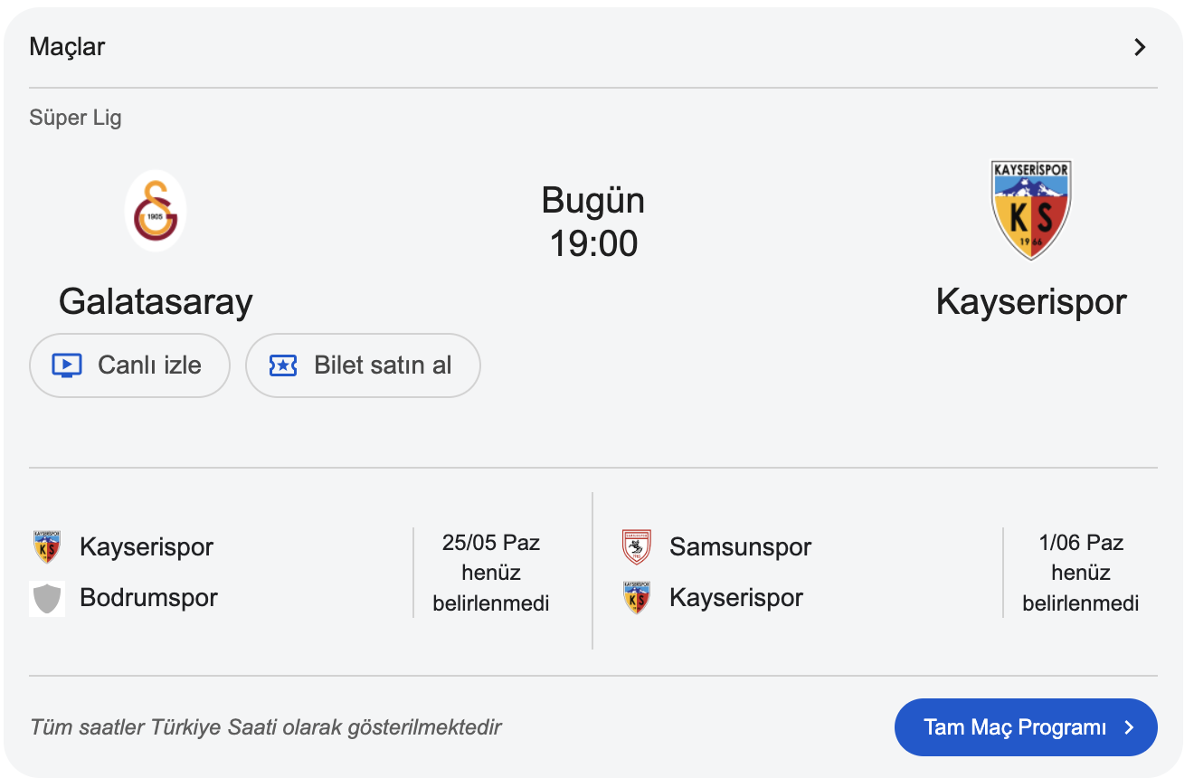Galatasaray, Süper Lig'in 36. hafta mücadelesinde Kayserispor'la karşılaşacak. Okan Buruk'un ekibi bu maçı kaybetmediği takdirde üst üste 3, toplamda da 25. şampiyonluğunu alacak.