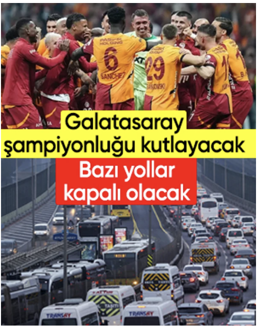 Galatasaray'ın şampiyonluk kutlamaları nedeniyle bazı yollar trafiğe kapatılacak