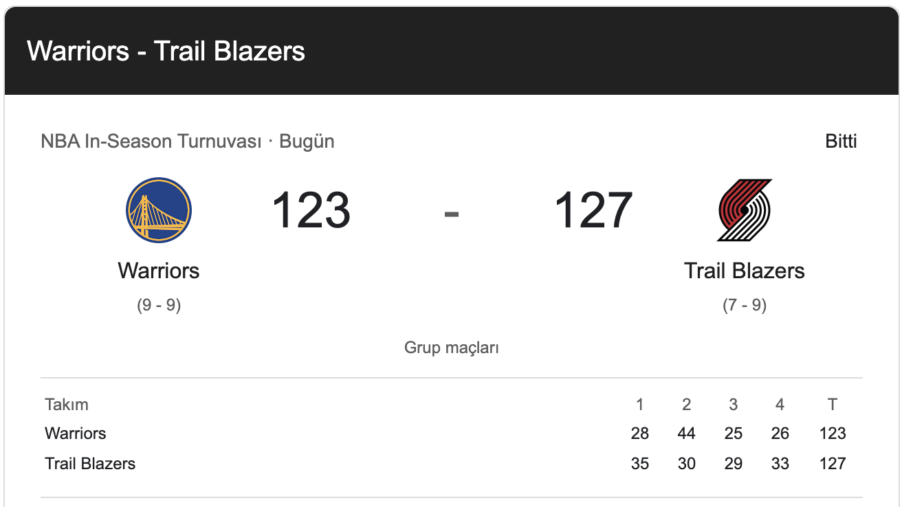 Golden State Warriors 123-127 Portland Trail Blazers: Emirates NBA Cup'ta Sürpriz Zafer! (Golden State Warriors vs Portland Trail Blazers: Surprise Victory in Emirates NBA Cup!)