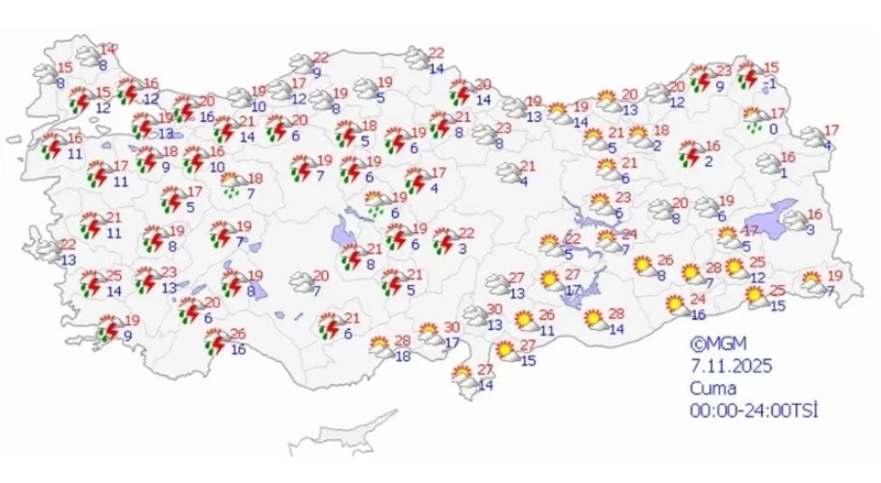 Meteoroloji  Genel Müdürlüğü, önümüzdeki hafta için güncel  hava durumu  tahmin raporunu yayımladı. Rapora göre, başta  İstanbul  olmak üzere 32 ilde sağanak yağışların etkili olması bekleniyor. Yağışlı hava dalgası, Salı gününden itibaren batı illerinden başlayarak Perşembe gününe kadar Marmara, Ege, Karadeniz ve İç Anadolu bölgelerinin büyük bölümünü etkisi altına alacak.