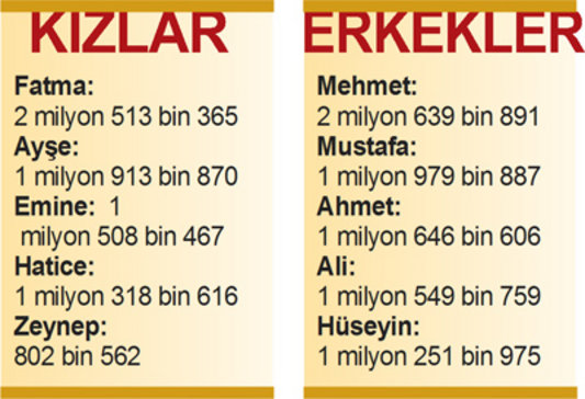 #TürkiyeEnÇokKullanılanİsimler # Mehmet # Fatma # Zeynep #EnYaygınİsimler #haber #sondakika #gündem #güncel #haberler #sicakhaber #keşfet #kesfet #keşfetteyiz #canlıyayın