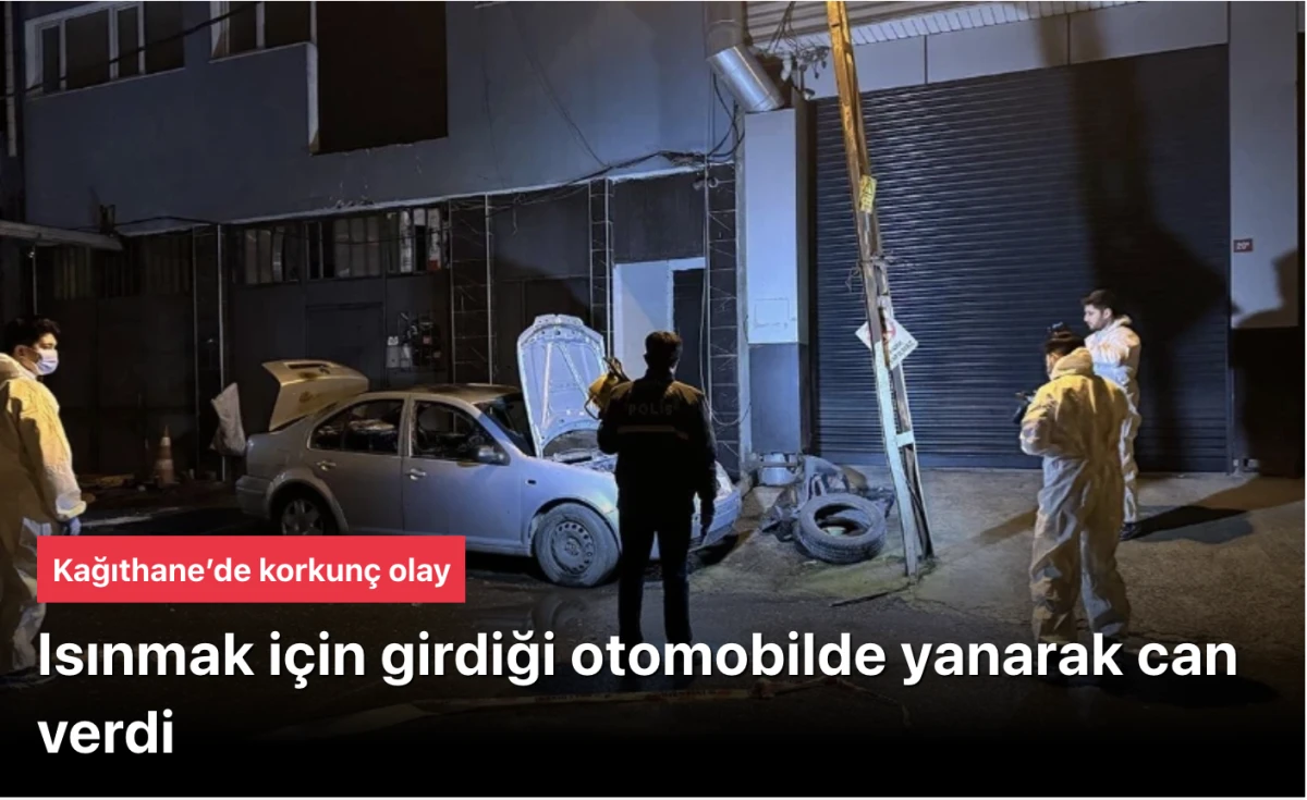 İstanbul Kağıthane'de, sokakta yaşayan bir kişi, ısınmak için girdiği arabada çıkan yangında öldü.