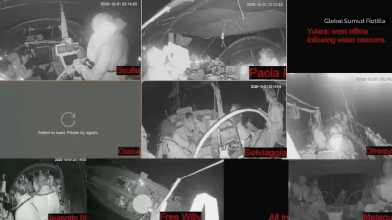 1 Ekim 2025 akşamı, Gazze ufukta belirirken, İsrail donanması (IDF Navy) harekete geçti. 20 savaş gemisi, filoyu 3 deniz mili mesafede kuşattı. Telsizden gelen uyarı: “Aktif savaş bölgesindesiniz, gemilerinizi durdurun.” Filo komitesi üyesi Thiago Avila, X’te yanıt verdi: “Savaş suçlarını mı kabul ediyorsunuz? Uluslararası Adalet Divanı (ICJ - International Court of Justice) kararları bunu yasaklıyor.”