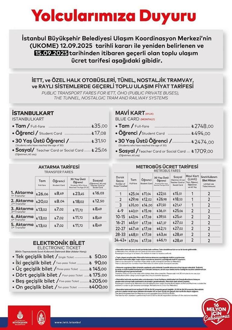 #haber #sondakika #gündem #güncel #haberler #sicakhaber #keşfet #keşfetteyiz #news #canliyayin #İstanbul #topluTaşıma #otobüsÜcreti #taksiÜcretleri #metroFiyatları #tramvayFiyatları #metrobüsÜcretleri