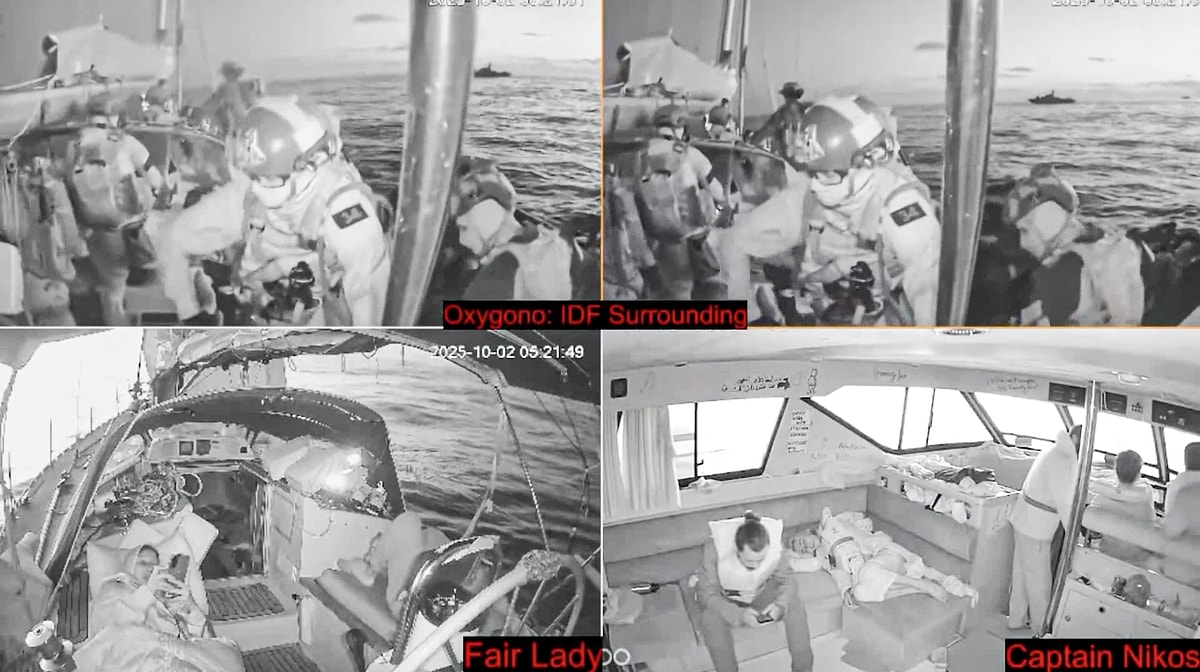 6 gemi doğrudan hedef alındı: Sirius, Alma, Spectre, HugaA, Deir YassineA ve Grande Blue. Reuters’ın canlı yayınından sızan görüntülerde, İsrail askerleri güverteye çıkıyor; aktivistler ellerini başlarının üstünde oturuyor. Greta Thunberg, İsrail Dışişleri Bakanlığı’nın videosunda sakin bir şekilde sorgulanıyor – “provokasyon” suçlamasına karşı “insani yardım” diyor.