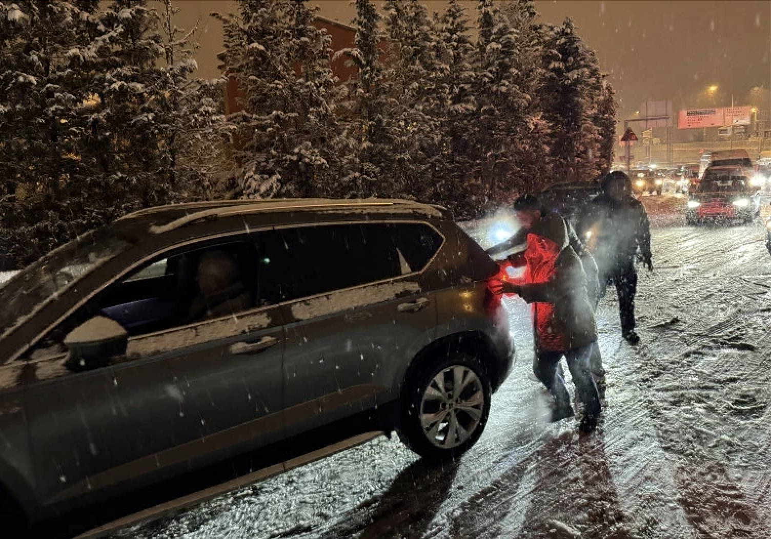İstanbul’da yeni yılın ilk saatlerinde başlayan kar yağışı, bazı ilçelerde ulaşımı olumsuz etkiledi. Sarıyer ve Beykoz'da bazı araçlar yolda kaldı.