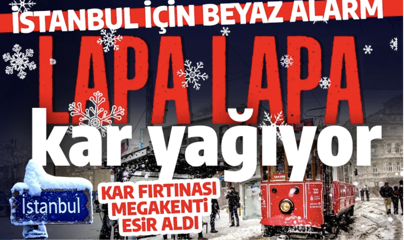İstanbul'da kar yağışı başladı. Meteoroloji Genel Müdürlüğü ve İstanbul Büyükşehir Belediyesi Afet Koordinasyon Merkezi'nin (AKOM) günlerdir yaptığı uyarıların peşinden beklenen kar yağışı gece yarısında kendini gösterdi. Aralıklarla süren kar yağışı yüksek kesimlerde etkili olurken, bir takım bölgelerde araçlar beyaz örtüyle kaplandı.