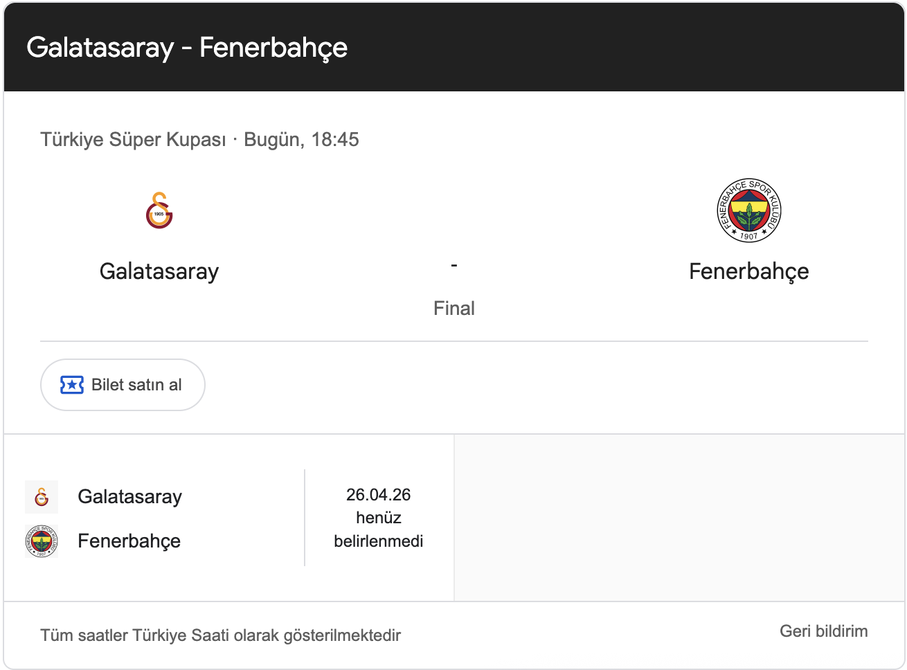 Metro İstanbul'un X (Twitter) sosyal medya hesabından yapılan açıklamada, "10 Ocak Cumartesi günü saat 18.45'te Atatürk Olimpiyat Stadı'nda oynanacak Galatasaray-Fenerbahçe 2025 Türkiye Süper Kupa Final maçı nedeniyle İstanbul Valiliği tarafından alınan karar gereği, M9 Ataköy-Olimpiyat Metro Hattı 15.00-00.00 saatleri arasında kapalı olacaktır." denildi.
