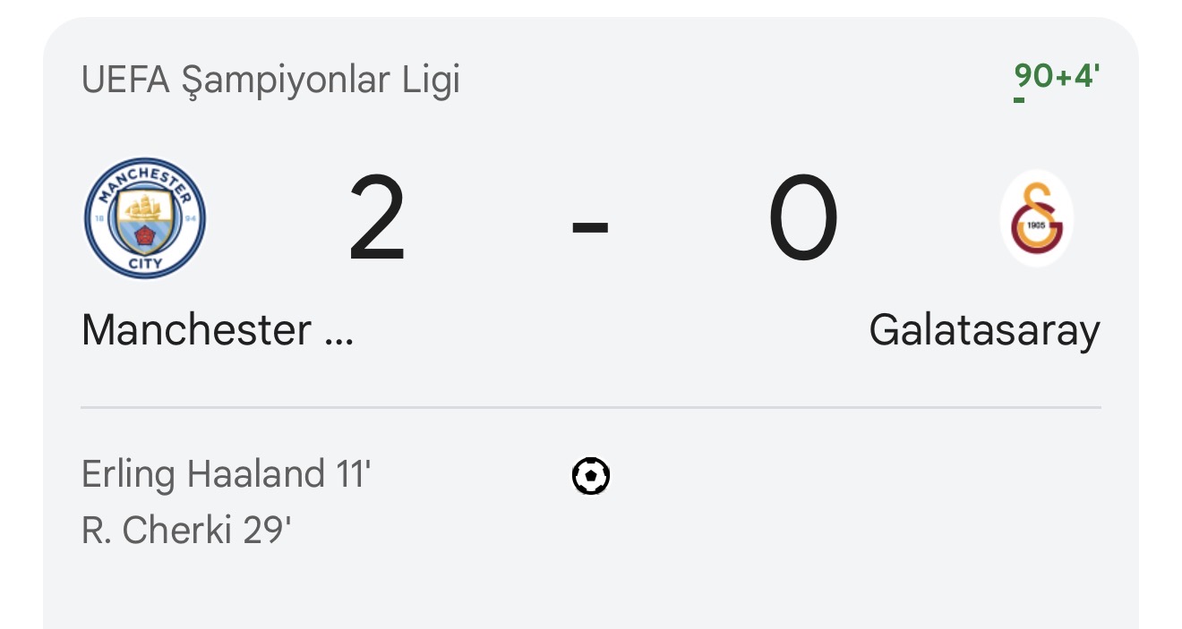 Bu sonuçla Manchester City puanını artırarak lig aşamasında üst sıralara tırmanma yolunda önemli bir adım attı. Galatasaray ise deplasmandaki bu yenilgiyle ilk 16’ya kalma şansını riske attı.