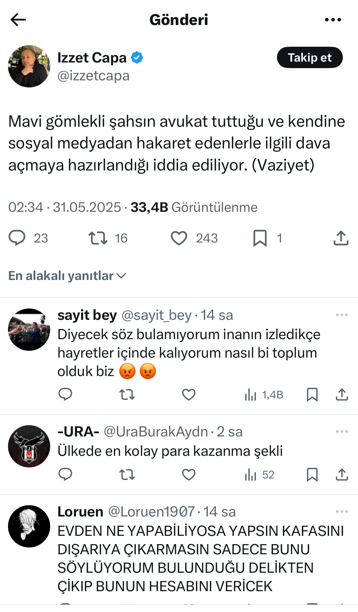 Mavi gömlekli genç adam; kız arkadaşın yanında diye mi bilinmez ama olmadık, kabul edilemez işler yapmışsın. Tüm ülke hayretle izledik. Seninle doğrudan ilgisi olmayan birikmiş öfke de sana yönlendi şu anda. Tüm bilgilerin ifşa olmuş. Bence acilen içten bir özür videosu yayınla.