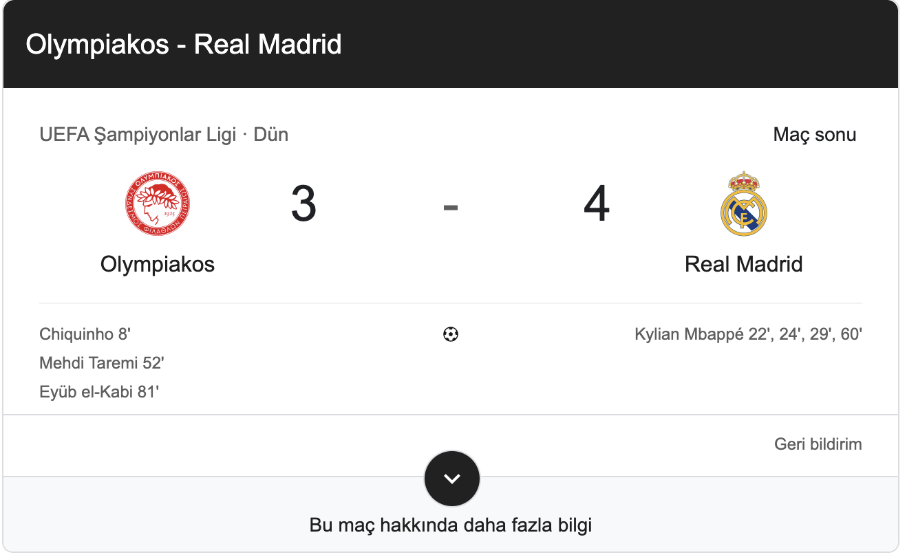 #Mbappé7DakikadaHatTrickYaptı #RealMadrid # Spor #Futbol #UEFAŞampiyonlarLigi #Olympiakos #ArdaGüler #HatTrick #ŞampiyonlarLigi #FutbolHeyecanı #haber #sondakika #gündem #güncel #haberler #sicakhaber #keşfet #kesfet #keşfetteyiz #canliyayin