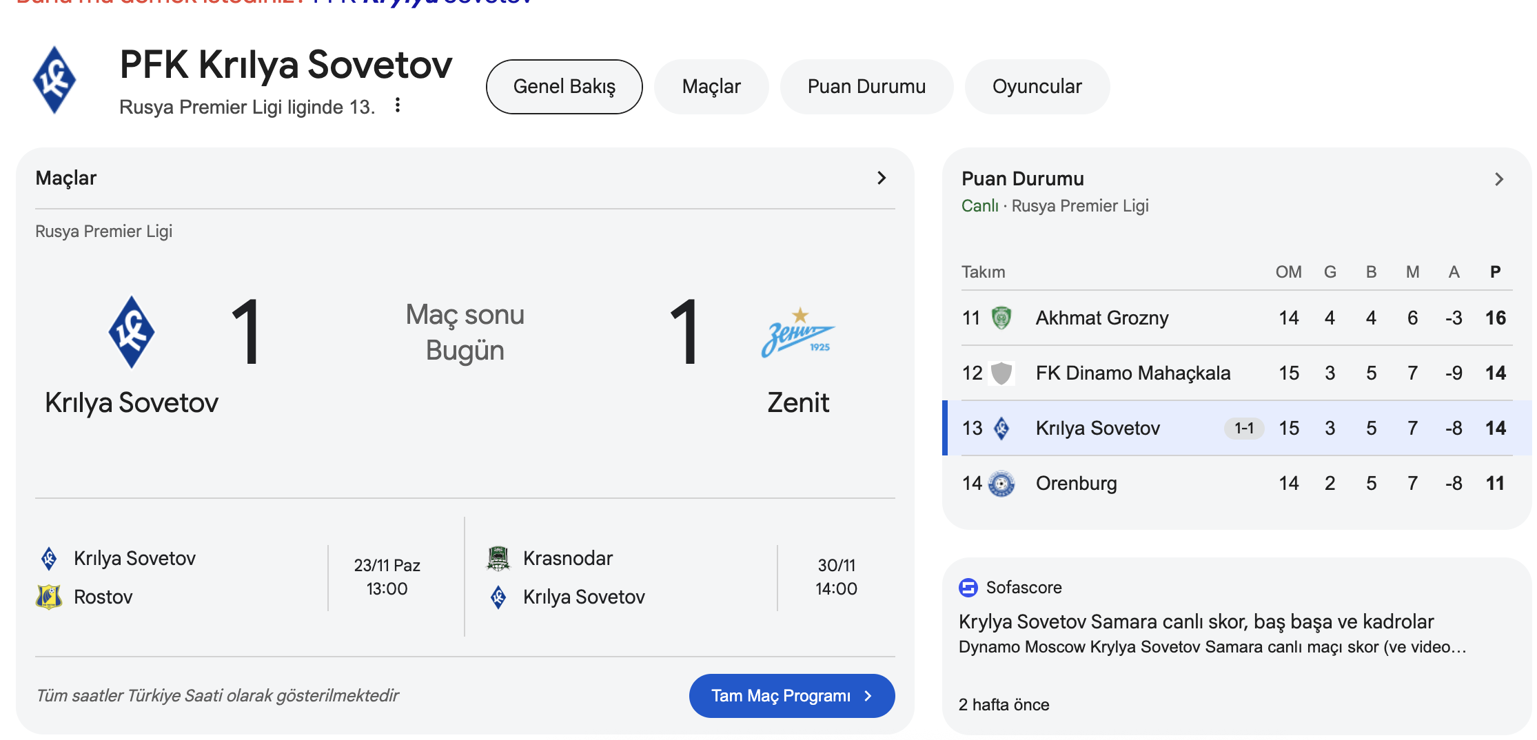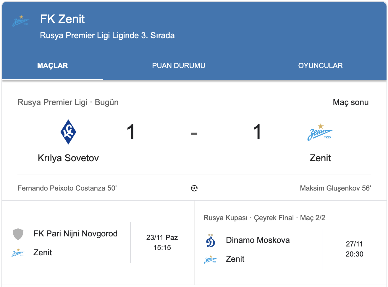 PFK Krylya Sovetov 1-1 Zenit Maç Özeti: Rusya Premier Lig'de Şok Beraberlik ve Heyecan Fırtınası (Krylya Sovetov vs Zenit Match Summary)