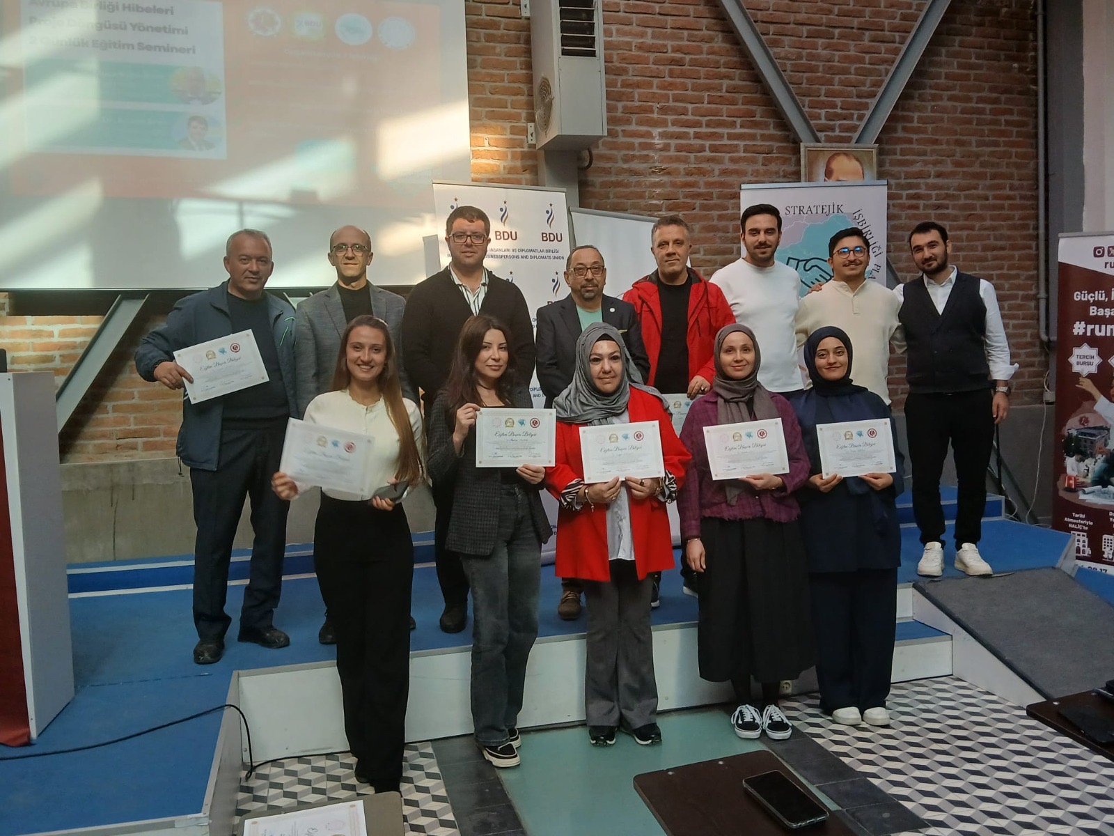 Proje Döngüsü Yönetimi eğitimini üstlenen Avrupa Birliği Uzmanı ve BDU Diplomatlar Birliği Kurucu Başkanı Musa Karademir, PDY yanı sıra uluslararası fonlar, fonlara ulaşım da takip edilecek yol hakkında da bilgi verdi. Eğitim sonunda katılımcılara sertifika verildi.