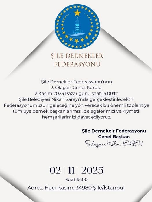 Şile Dernekler Federasyonu 2. Olağan Genel Kurulu Heyecanı: Süleyman Hilmi Eren’den Davet (Sile Associations Federation 2nd Ordinary General Assembly)