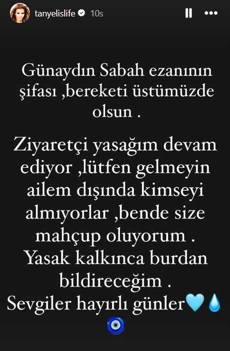 Pankreas kanseri tedavisi gören oryantal Tanyeli, sosyal medya hesabından ziyaretçi yasağı getirildiğini duyurdu. Art arda ameliyat olan Tanyeli'nin bağışıklık sisteminin korunması için bu karar alındı. Ünlü isim tüm sevenlerinden hassasiyet rica etti.