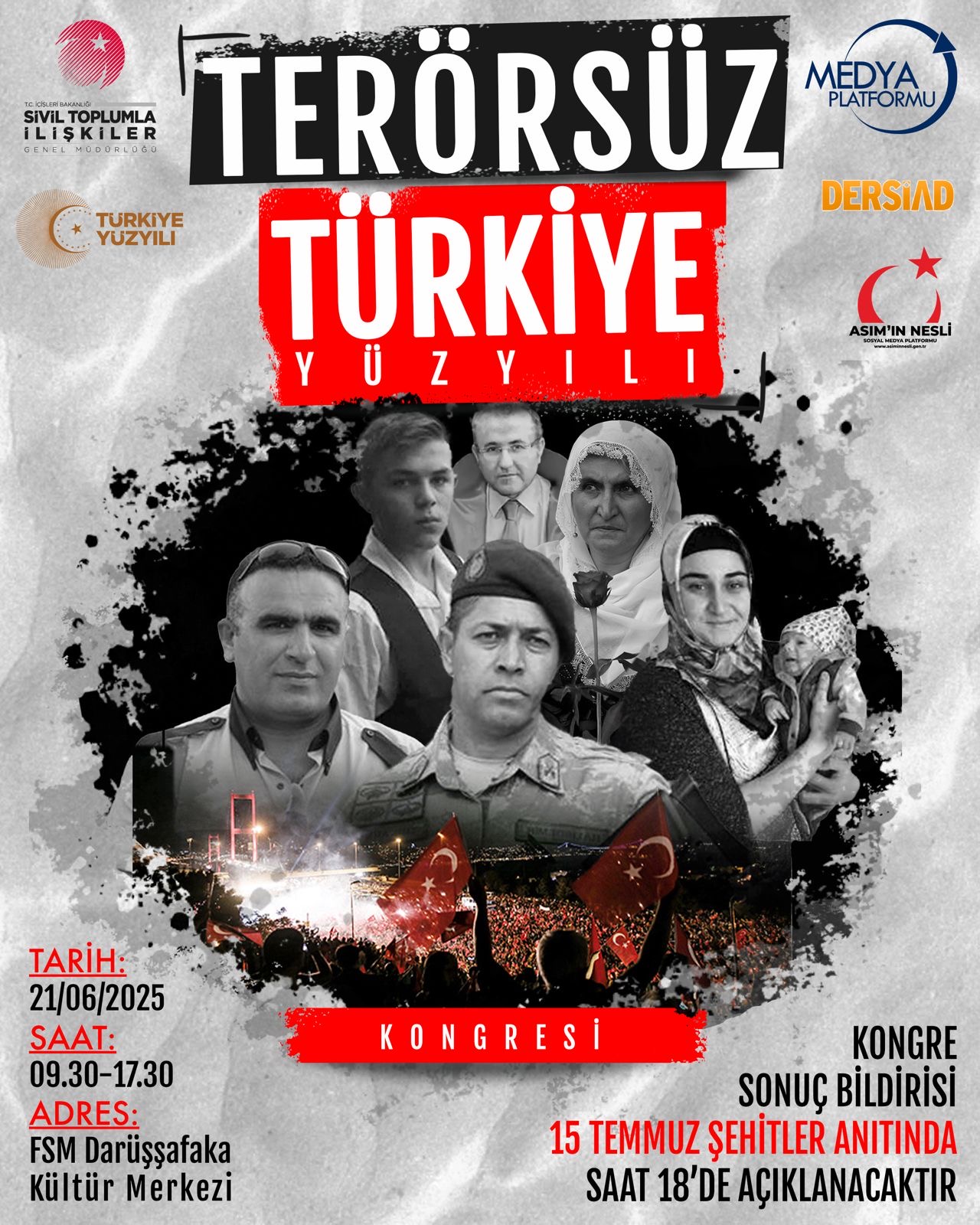 Sivil Toplumla İlişkiler Genel Müdürlüğü ile Fatih Belediyesi ev sahipliğinde Medya Platformu Derneği'nin düzenleyeceği kongre programına davet çağrısı geldi. Kongre programında devlet erkanıi siyaset, sanat, iş dünyası ve şehit aileleri katılım sağlayacak.
