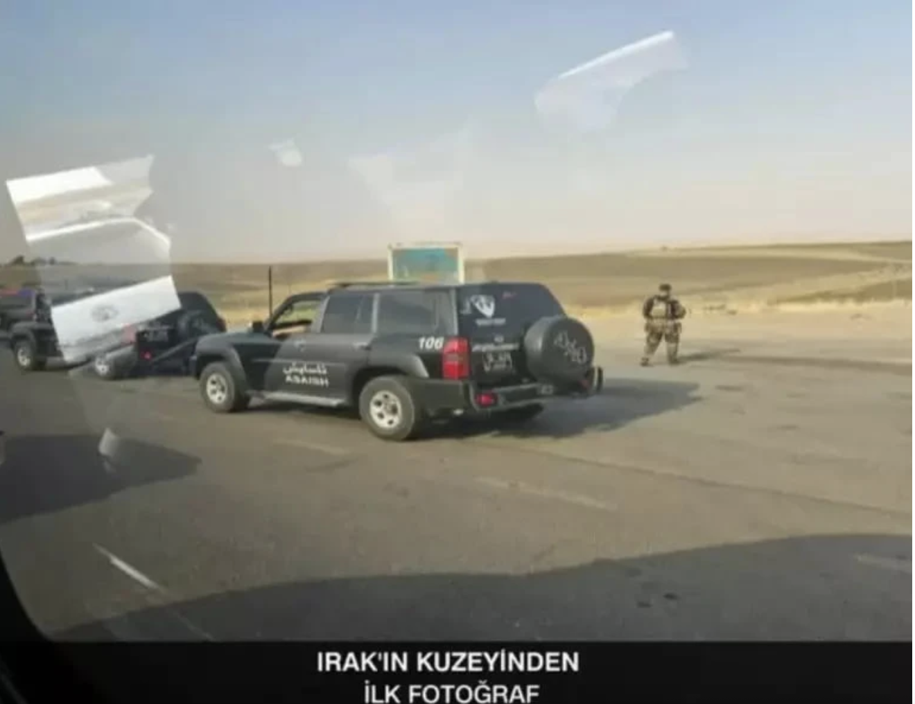 Silah bırakacak grup Erbil'den hareket ederken oluşan büyük konvoy Süleymaniye yolunda görüntülendi.