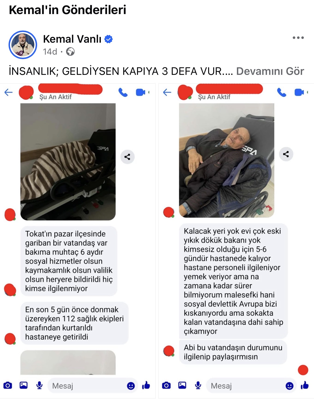 Gazeteci Kemal Vanlı'nın paylaşımındaki sokakta kalan ve bakıma muhtaç olan vatandaşa ait olduğu iddia edilen işte o görüntüler;