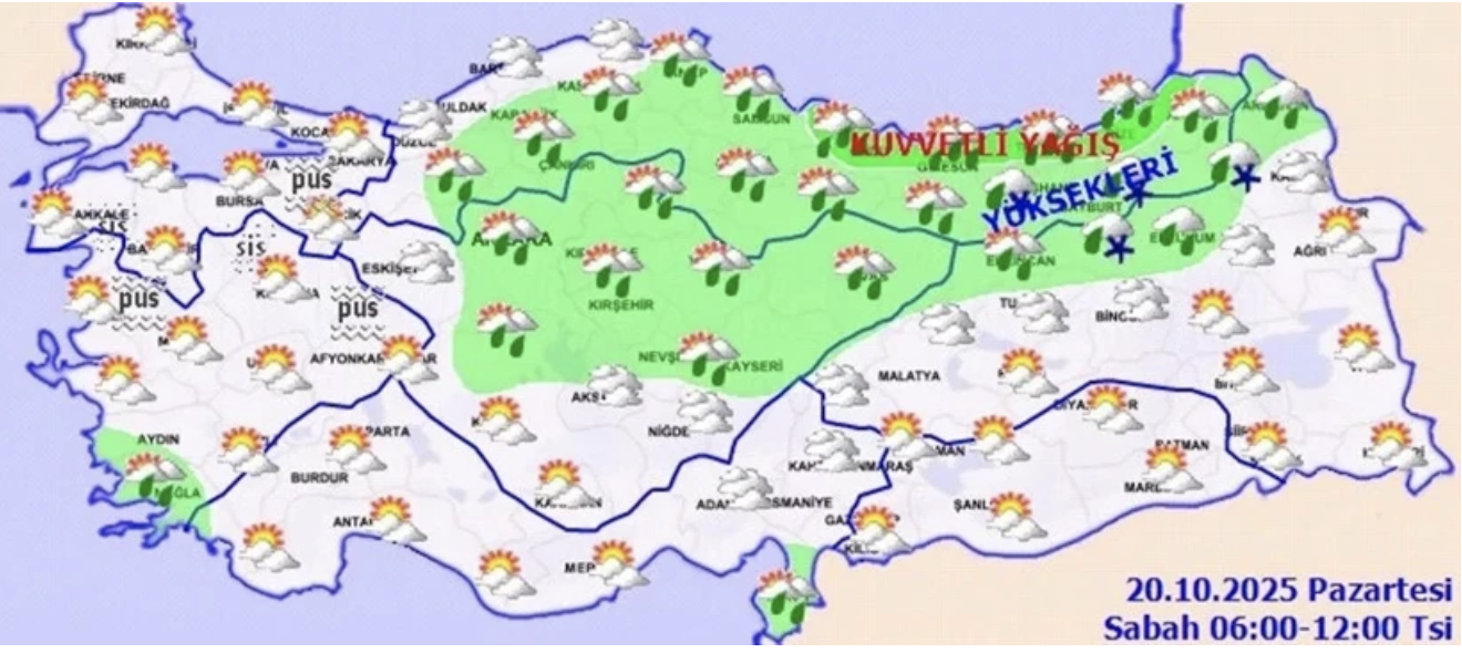 NetHaberler’in edindiği bilgiye göre; Meteoroloji Genel Müdürlüğü (Meteorological General Directorate) tarafından yayınlanan son tahminler, Türkiye genelinde yeni haftanın kış mevsimine hazırlık niteliğinde geçeceğini işaret ediyor. Kuzey ve iç kesimlerde hava sıcaklıklarının belirgin şekilde azalması beklenirken, yüksek kesimlerde karla karışık yağmur ve yer yer kar yağışı öngörülüyor. Özellikle Güney Ege (Southern Aegean), Batı Akdeniz'in iç kesimleri (Inner Parts of Western Mediterranean), İç Anadolu (Eskişehir ve Karaman hariç) (Central Anatolia excluding Eskişehir and Karaman), Batı Karadeniz'in iç kesimleri (Inner Parts of Western Black Sea), Orta ve Doğu Karadeniz (Central and Eastern Black Sea), Doğu Anadolu’nun kuzeyi (Northern Eastern Anatolia) ile Adana, Osmaniye, Hatay, Sinop, Bitlis, Şırnak ve Siirt çevrelerinde sağanak yağış hakim olacak. Bu durum, vatandaşları HAVA DURUMU (WEATHER CONDITION) değişikliklerine karşı tedbirli olmaya çağırıyor.